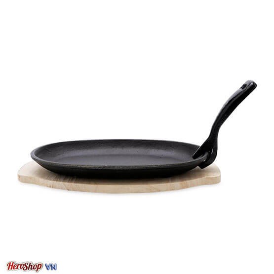 - Bộ Chảo Gang Chống Dính Kèm Đế Gỗ Oval HVNCLC được thiết kế kiểu dáng hình Oval có dụng cụ ba chĩa để gắp với khả năng làm nóng nhanh, giữ nhiệt tốt, giúp chế biến món trứng ốp la, bò bít tết nhanh chóng và thơm ngon hơn.