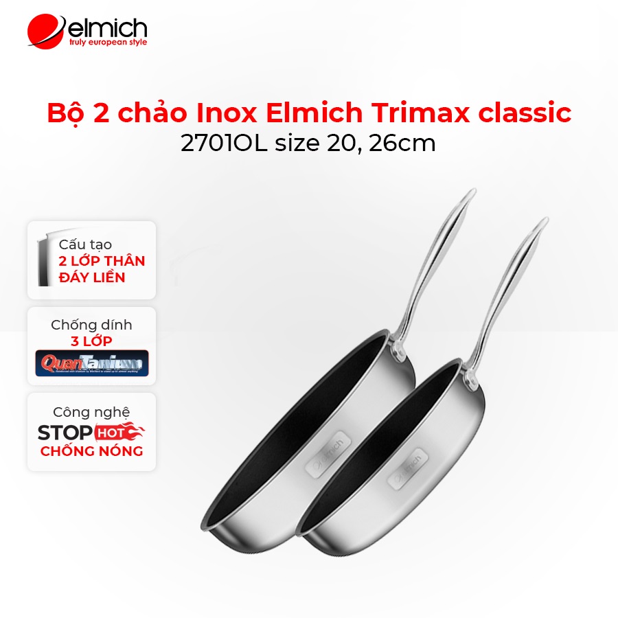 Nhà cửa & Đời sống > Dụng cụ nhà bếp > Chảo || [Mã LIFEMALL2503 giảm 15% đơn 99K] Bộ 2 chảo Inox 2 lớp đáy liền Elmich Trimax classic 2701OL size 20, 26cmCòn hàng