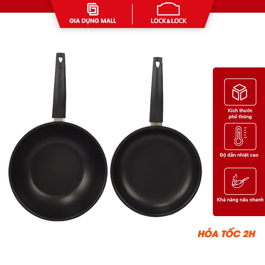 Bộ 2 chảo Lock&Lock Easy Frypan 2P Set, Chảo 1 tay cầm 24cm + Chảo lòng sâu 26cm (LEY1243 x 1, LEY1265 x 1) LEY1243S2