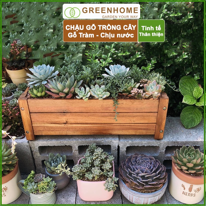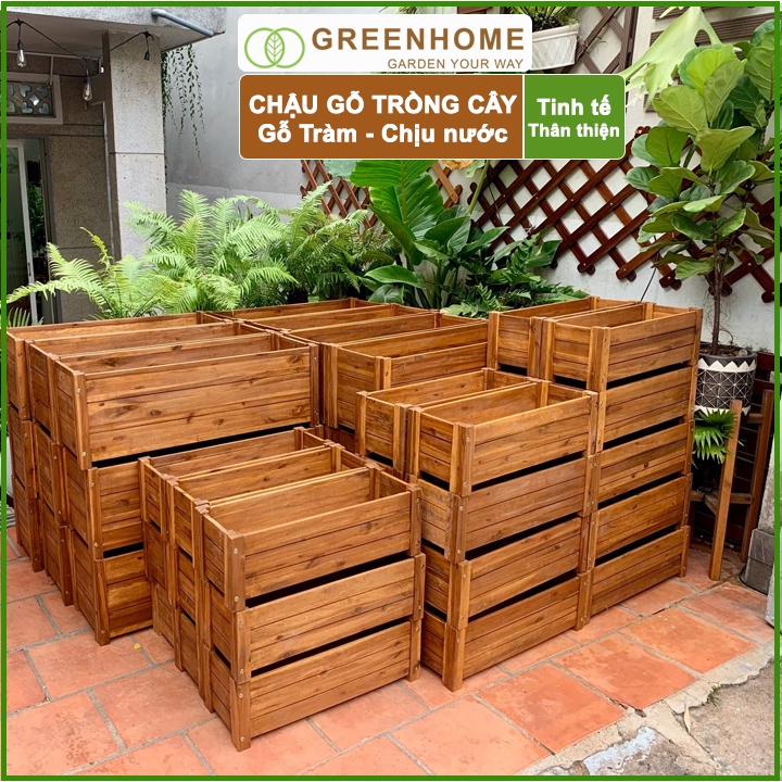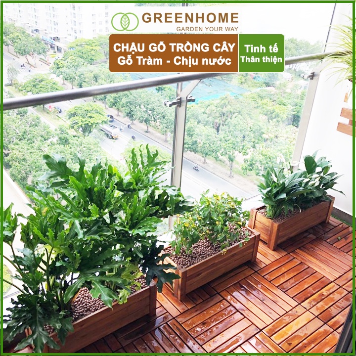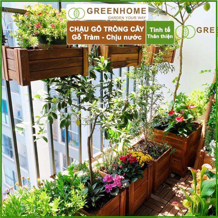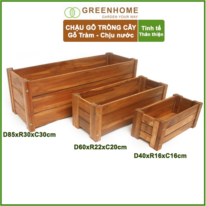 Nhà cửa & Đời sống > Làm vườn > Chậu cây || Bộ 2 Chậu gỗ trồng cây, chữ nhật, D40xR16xC16cm, gỗ Tràm chịu nước, tặng 1 hộp dưỡng hoa tươi lâu |GreenhomeCòn hàng