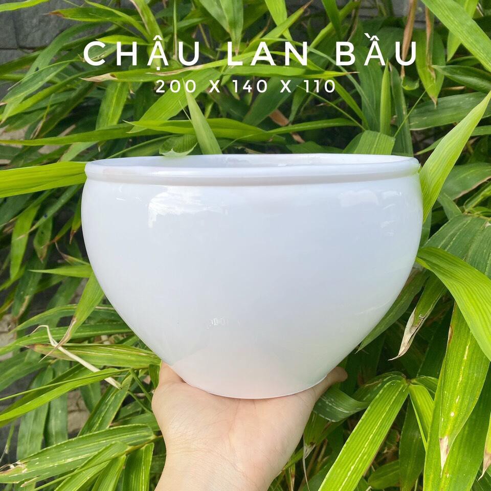 Chậu lan bầu 20x14cm nhỏ xinh, với thiết kế đơn giản mà sang trọng cùng sắc trắng tinh khôi kết hợp với những nụ hoa rực rỡ, mang đến không gian tươi đẹp và đầy sức sống cho ngôi nhà bạn.