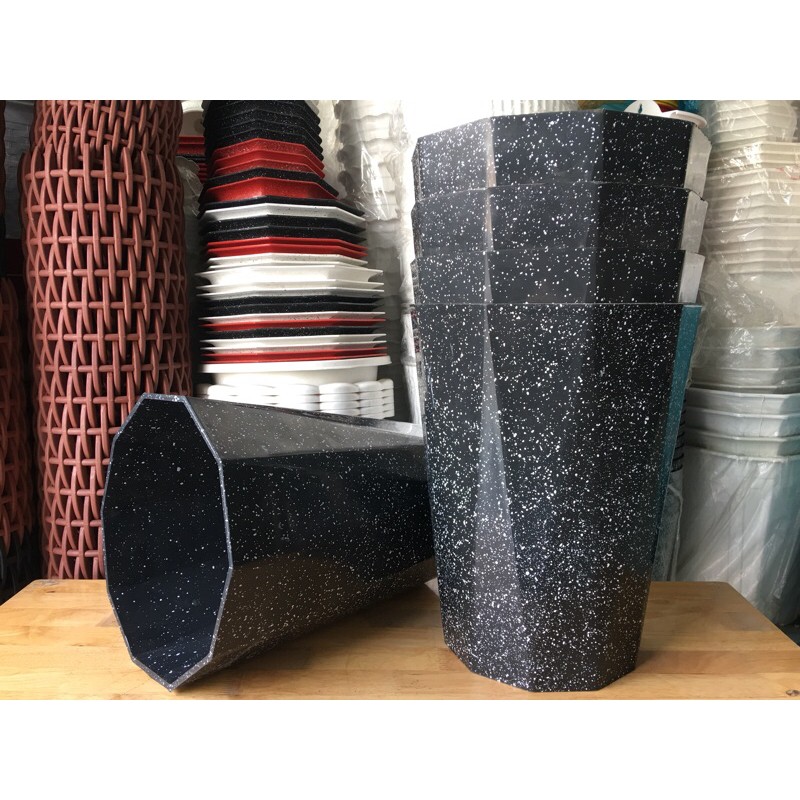 2 Chậu Nhựa Trồng Cây Dáng Cao, Chậu kim cương, Chậu 8 Canh, Chậu Lục Giác (Nhiều màu)Chậu kim cương - Chậu 8 Cạnh loại tốt nhất (Có mẫu Đá Trắng - Đen mới Sản xuất)