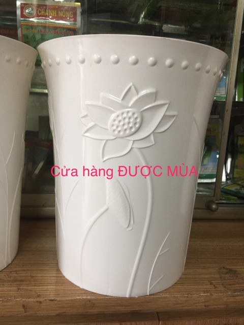 Combo gồm 2 chậuChậu nhựa dáng cao hoa sen nổi như chậu sứ.