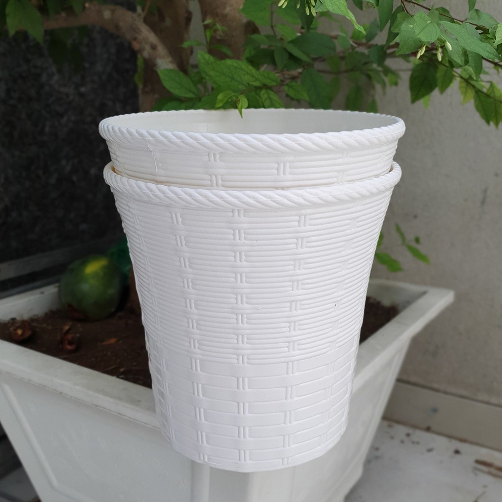 Nhà cửa & Đời sống > Làm vườn > Chậu cây || Bộ 2 chậu trồng hoa mây đan hai lớp màu trắng 26x26cmCòn hàng