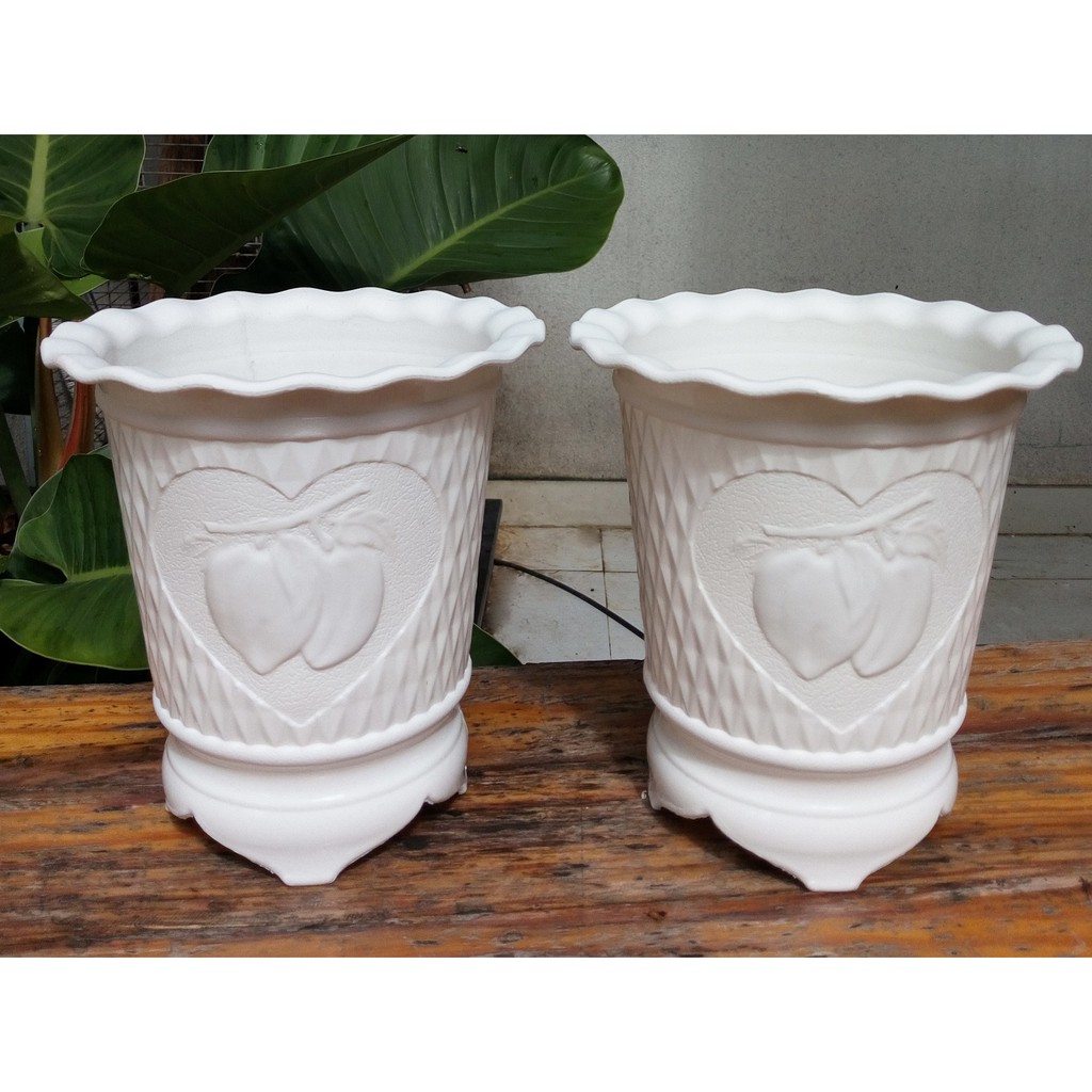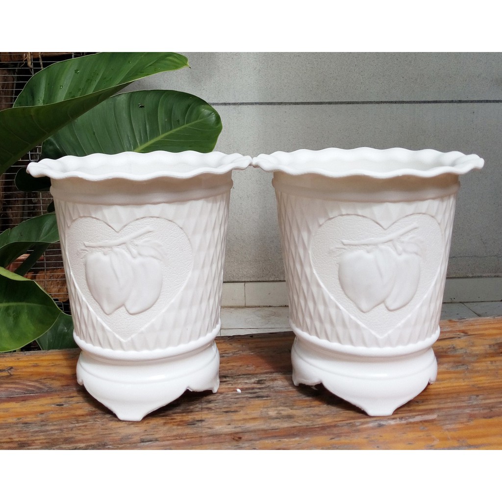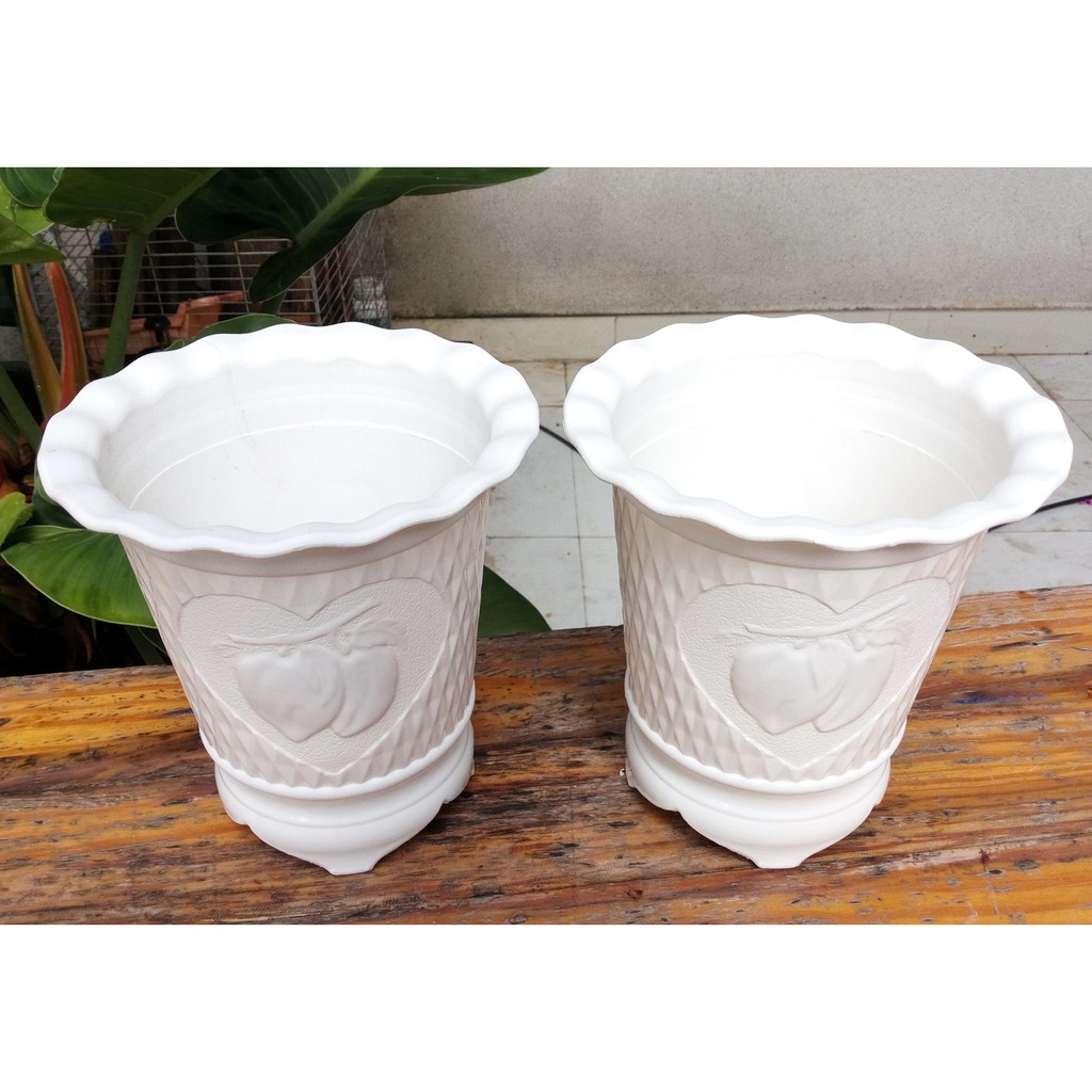 Nhà cửa & Đời sống > Làm vườn > Chậu cây || Bộ 2 chậu trồng hoa trái đào màu trắng size 17x19x12cmCòn hàng