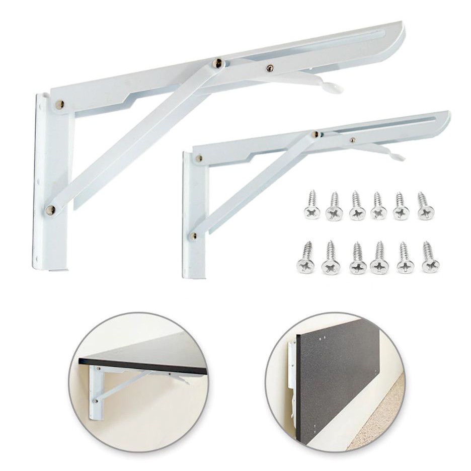 Giá đỡ gập thông minh- Ke đỡ gập chịu lực 85kg - Bộ 2 cái kiểu chữ K chiều dài 20-25-30-35-40-45-50cm chất liệu inox và thép sơn trắng