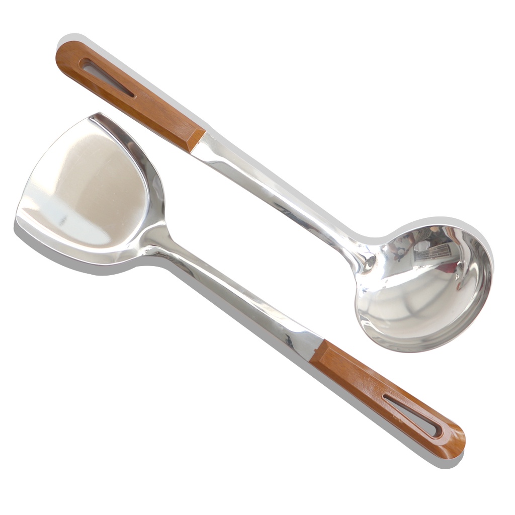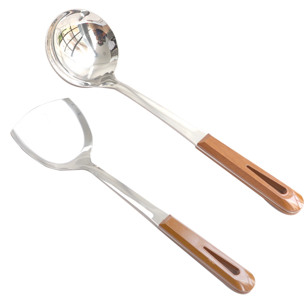 [2 CHIẾC] Vá Múc Canh Và Xẻng Lật Loại Lớn Có Hoa Văn Bền Đẹp Inox Không Bị Gỉ Sét Dài 33cm