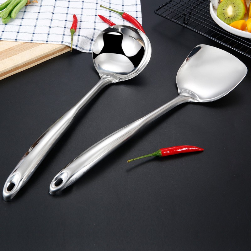 Nhà cửa & Đời sống > Dụng cụ nhà bếp > Cây vét bột & đồ gắp thức ăn || [2 CHIẾC] Vá Múc Canh Và Xẻng Lật Loại Lớn Có Hoa Văn Bền Đẹp Inox Không Bị Gỉ Sét Dài 33cmCòn hàng