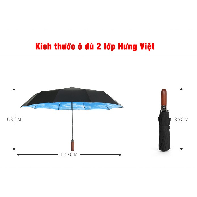 Giới thiệu Ô dù 2 chiều 2 lớp tự động cán gỗ cao cấp Hưng Việt chống UV