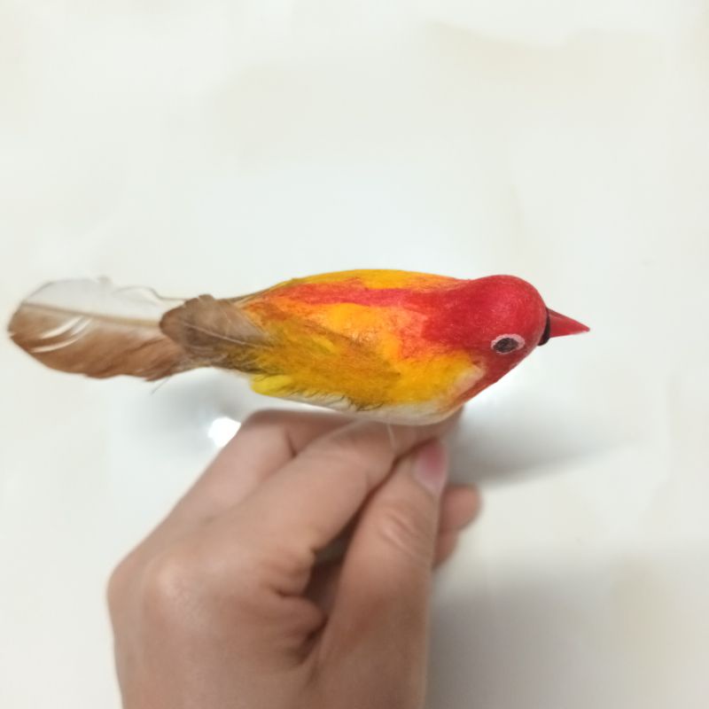 - chất liệu : nhựa, xốp, đuôi chim bằng lông thật, kèm kẽm ở bụng để cột cố định