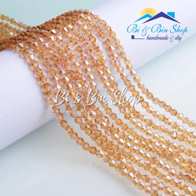 [2] Chục 10 Dây Pha Lê Nón 4mm Màu Ánh Cừ Đính Kết Trang Phục, Làm Trang Sức Handmade