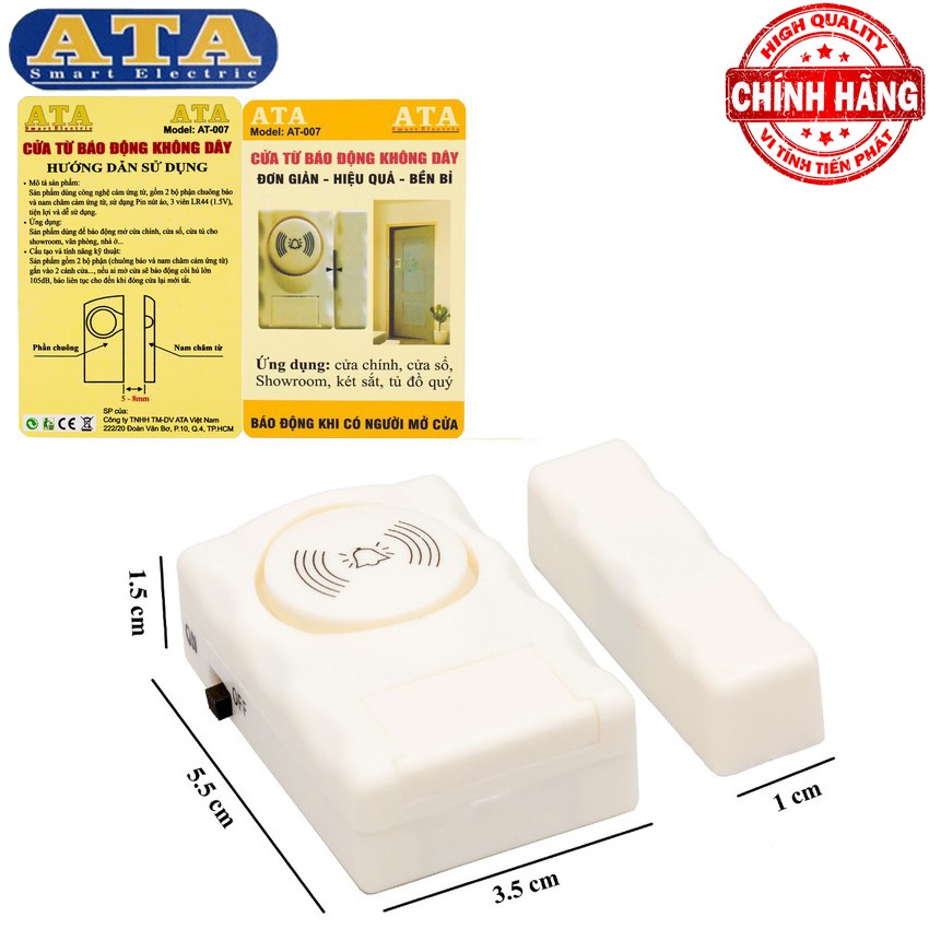 Thiết Bị Điện Gia Dụng > Mạch điện & Phụ tùng > Chuông cửa || Bộ 2 Chuông Cảm Ứng Từ Gắn Cửa Báo Chống Trộm hiệu ATA AT-007Còn hàng