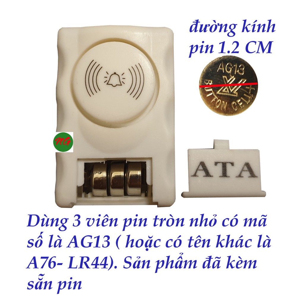 - Phần chuông sử dụng 03 viên pin nút áo LR44 ( 1.5 volt), còn gọi là pin AG13.