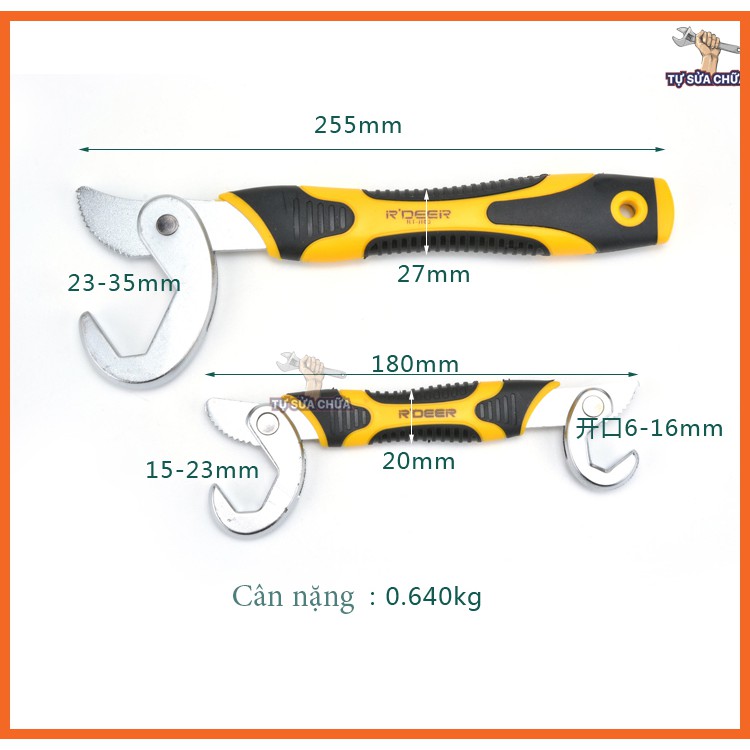 Bộ 2 cờ lê mỏ lết đa năng chính hãng R'deer RT-H03 cán bọc cao su mở 9-32mm, vặn được nhiều loại ốc khác nhau
