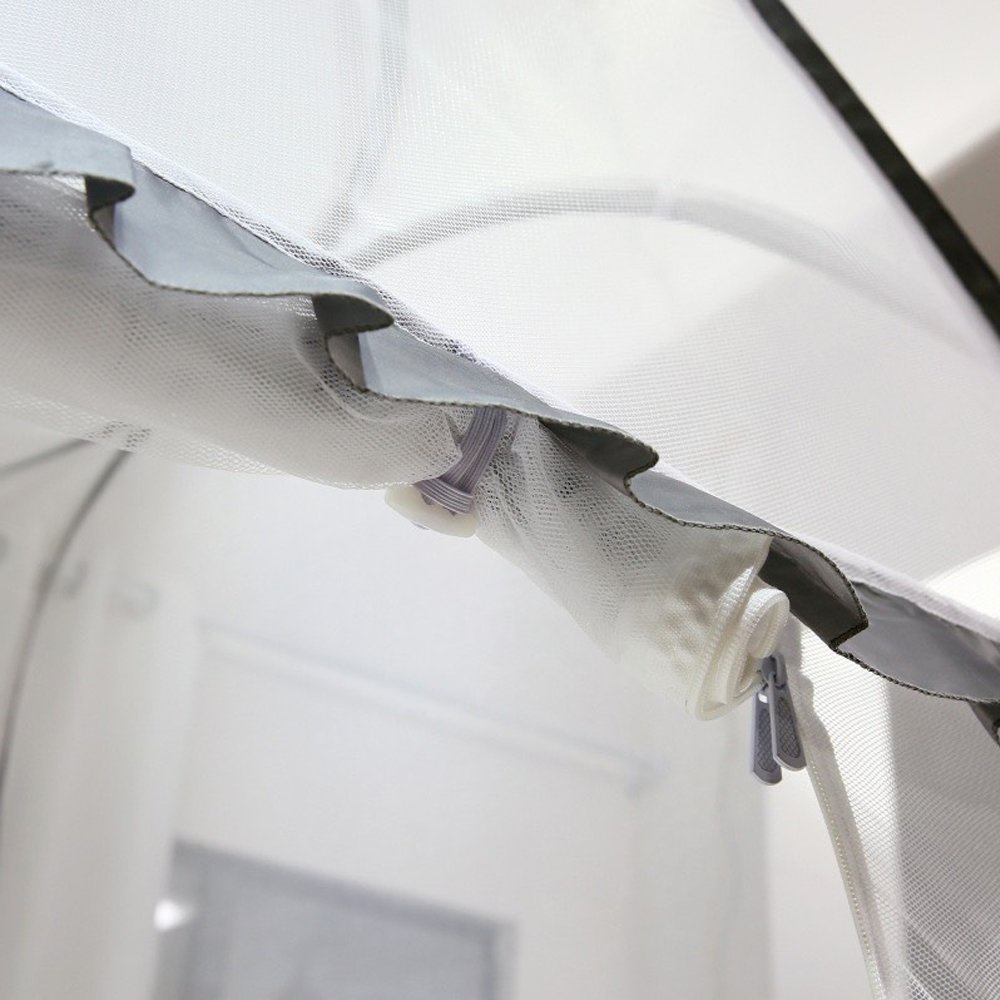 + Đáy màn được may cẩn thận, chần kỹ, sắc cạnh. Kết hợp với 4 góc chun cài vào nệm và khung thép vững chắc, giúp bảo vệ em bé không bị lăn khỏi giường giúp mẹ yên tâm để bé nằm ngủ một mình.