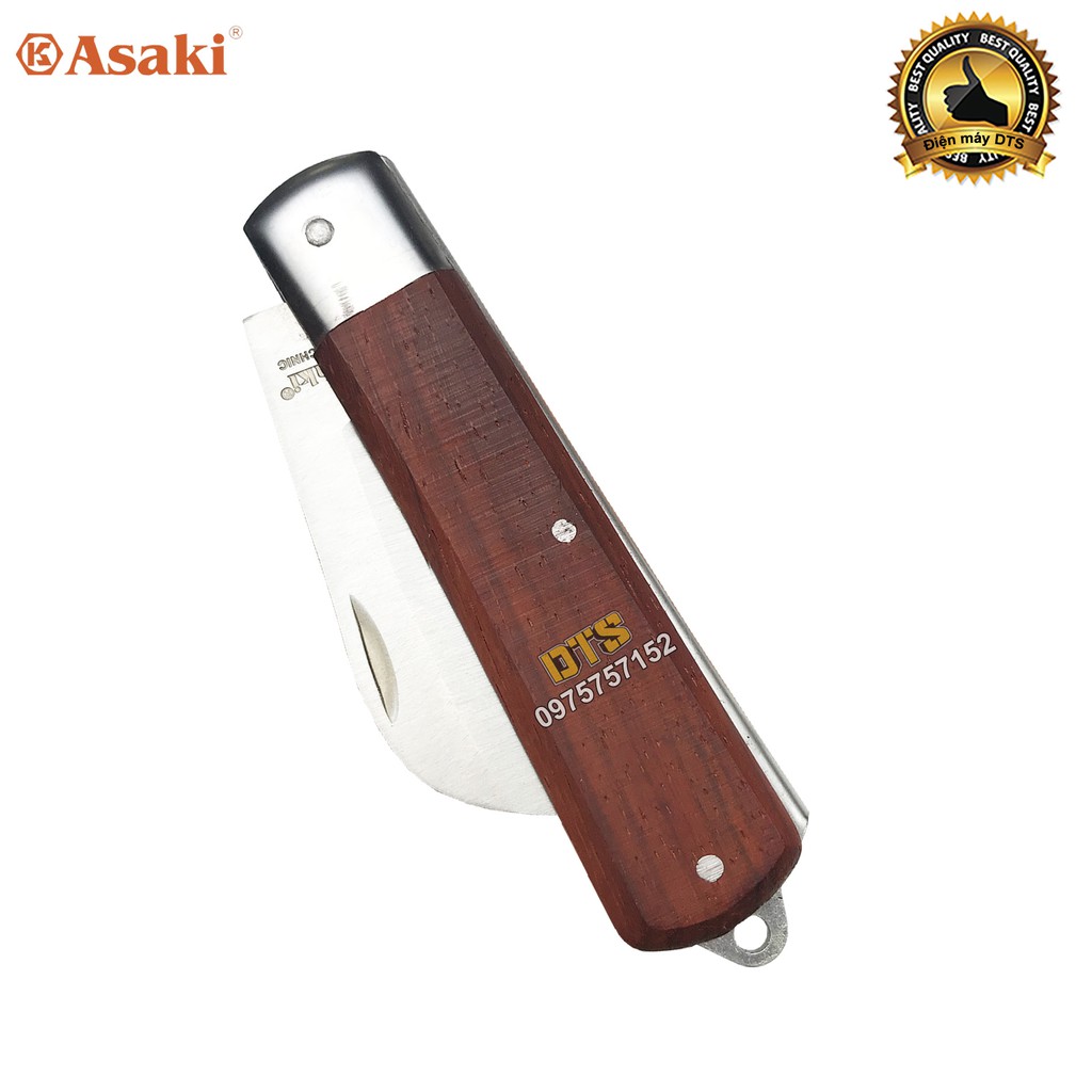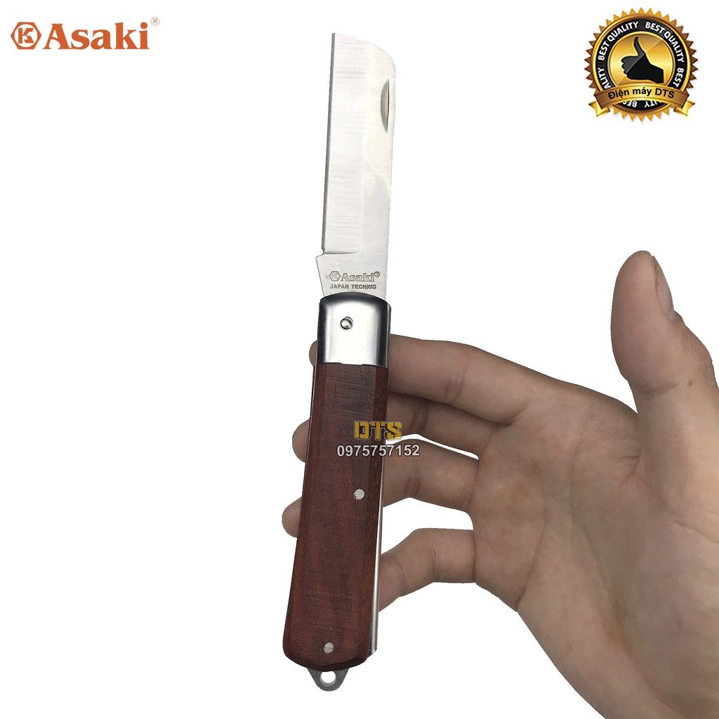 Bộ 2 dao tuốt dây điện lưỡi thẳng, lưỡi cong Asaki, dao rọc cáp, gọt vỏ dây điện, thép không gỉ, cán ốp gỗ đỏ