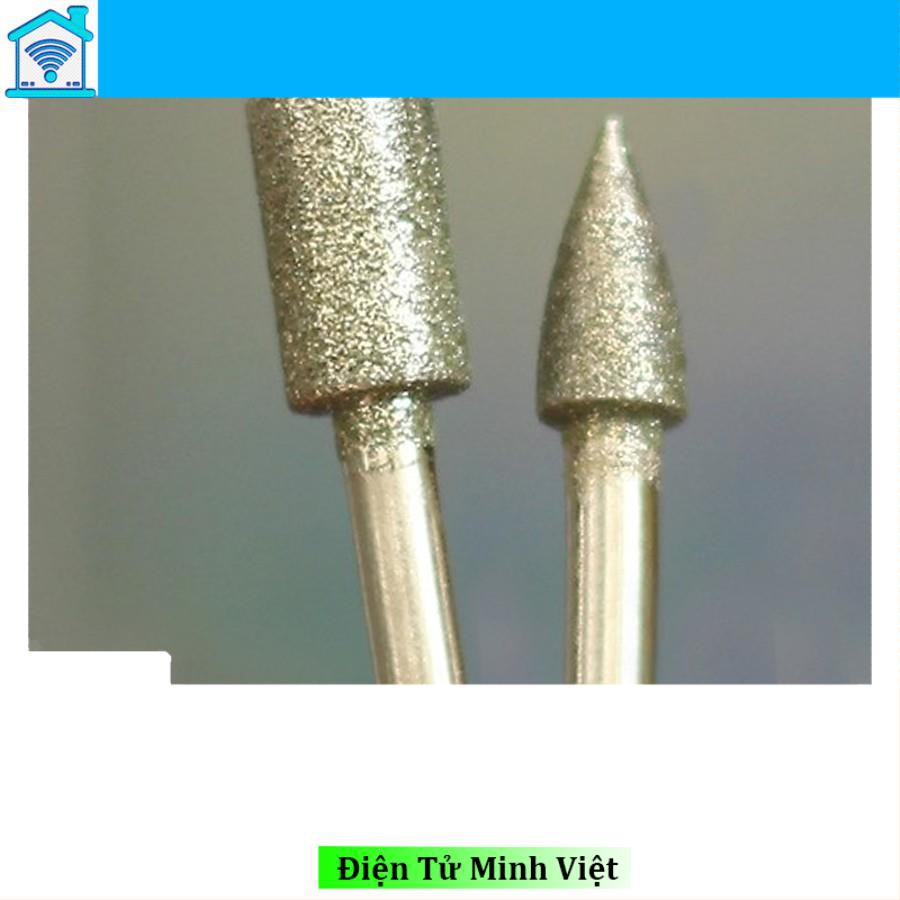 Bộ 2 đầu mài Kim Cương Trục 3mm 01 Mũi Trụ và 01 Mũi Nhọn Chất Lượng Cao