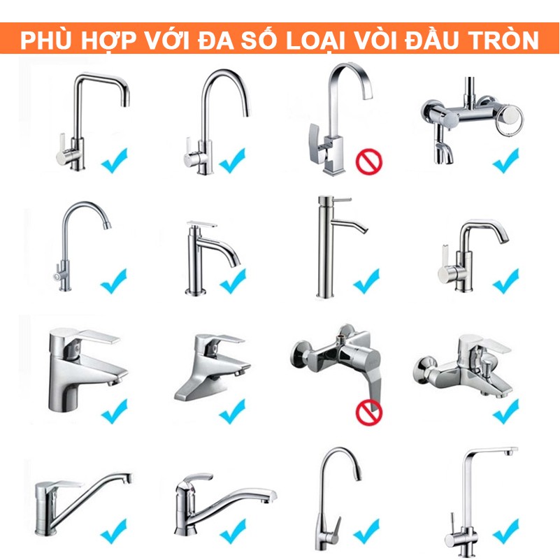 Kích thước : có thể gắn với ren trong 21mm ( phù hợp hầu hết các loại vòi phổ thông ) và ren ngoài 24mm, dễ dàng lắp đặt cho nhiều loại vòi khác nhau