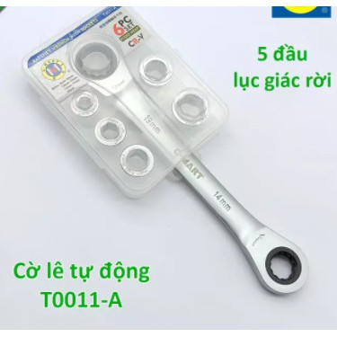Bộ chén vặn ốc T0011 8-19mm là cờ lê có 2 bánh cóc xoay một chiều giúp người sử dụng không cần nhấc cờ lê sau mỗi thao tác vặn, chuyên dùng để mở hoặc siết bu lông, ốc vít một cách dễ dàng nhờ các đầu lục giác rời