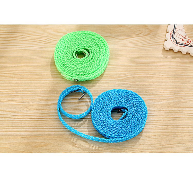 - Với chiều dài 5 m, mỗi dây phơi đều có gắn 2 móc treo bằng inox giúp bạn dễ dàng treo dây phơi, không cần phải buộc nút để cố định như các loại dây thông thường.