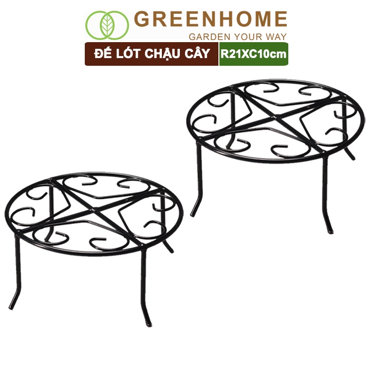 Nhà cửa & Đời sống > Làm vườn > Chậu cây || Bộ 2 Đế lót chậu cây bằng sắt, R21xC10cm, hình tròn, sơn tĩnh điện, màu đen, uốn mỹ nghệ, bền, đẹp |GreenhomeCòn hàng