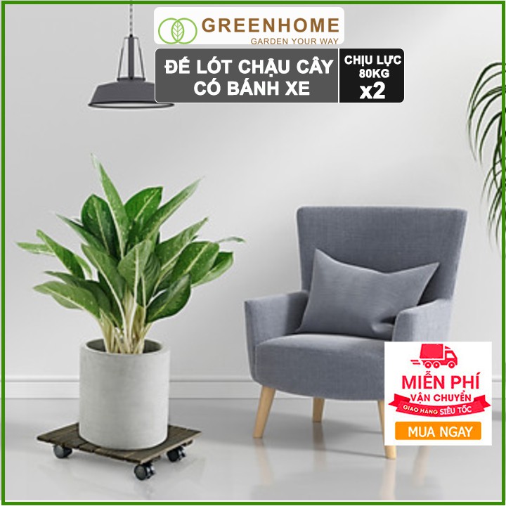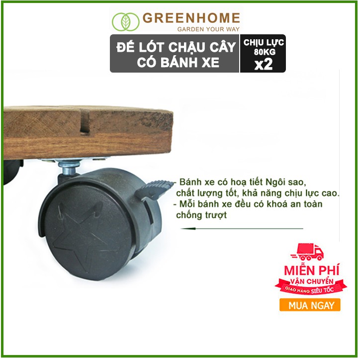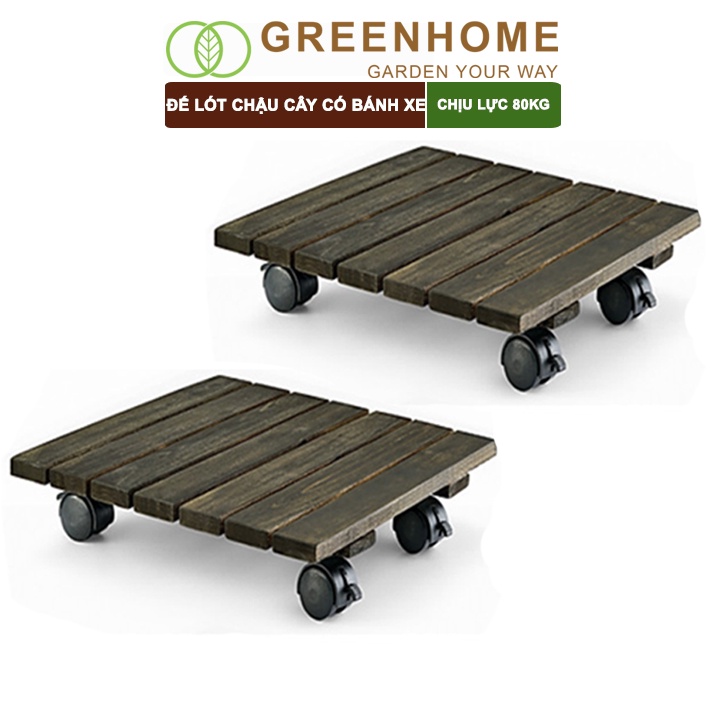 Nhà cửa & Đời sống > Làm vườn > Chậu cây || Bộ 2 Đế lót chậu cây có bánh xe, hình vuông, màu đen, bằng gỗ, chịu lực 80kg, R30xC8cm |GreenhomeCòn hàng