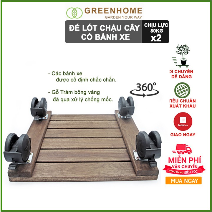 - Đế lót chậu cây có bánh xe Được làm bằng những thanh gỗ chất lượng cao, bền và chắc chắn, chịu được trọng lượng đến 80kg. Chịu nhiệt độ cao, chống tia cực tím, chống thấm nước, mạnh mẽ và bền.