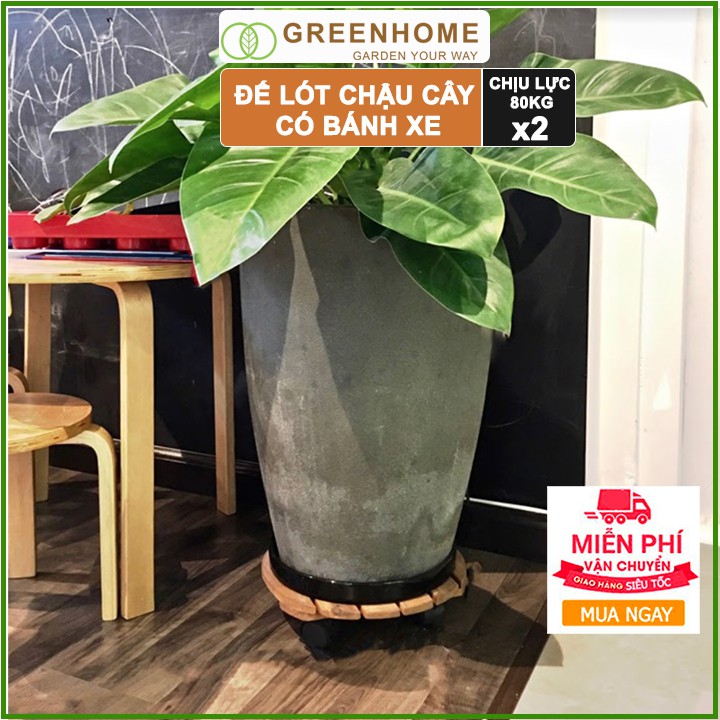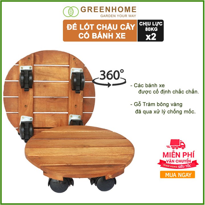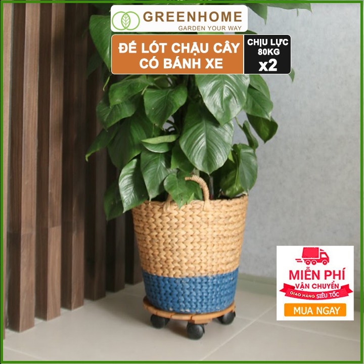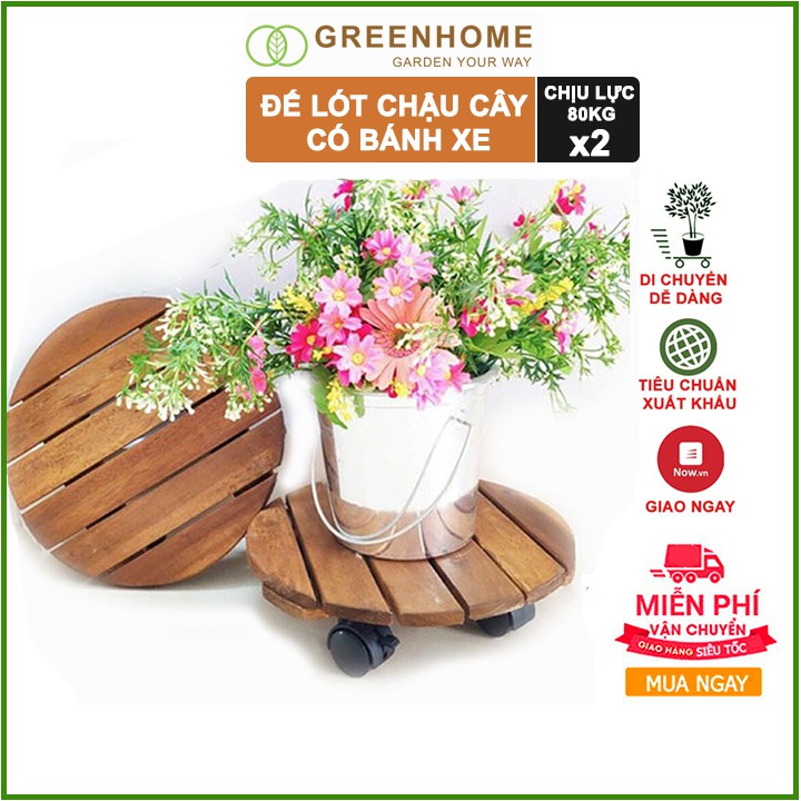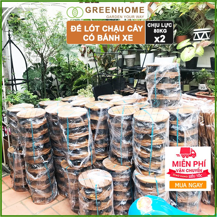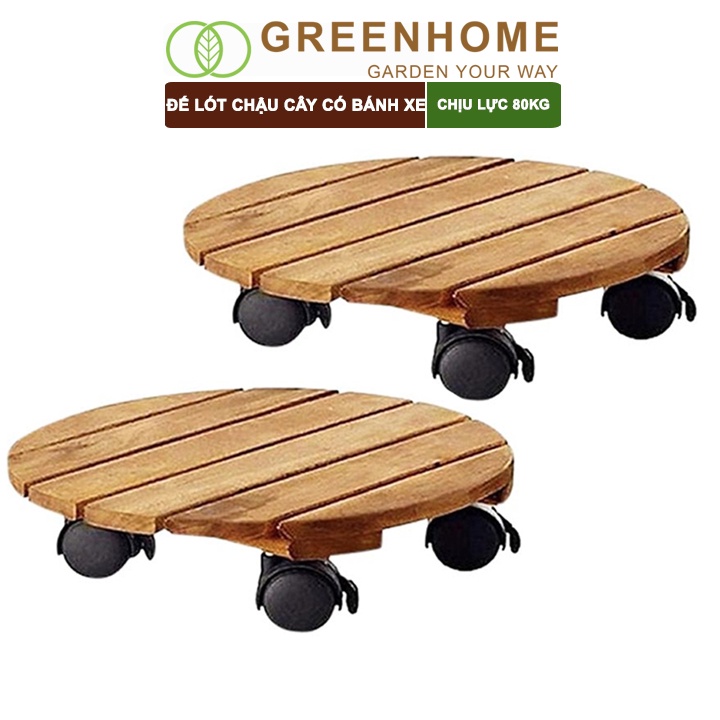 Nhà cửa & Đời sống > Làm vườn > Chậu cây || Bộ 2 Đế lót chậu cây có bánh xe, hình tròn, màu nâu, bằng gỗ, chịu lực 80kg, R30xC8cm |GreenhomeCòn hàng