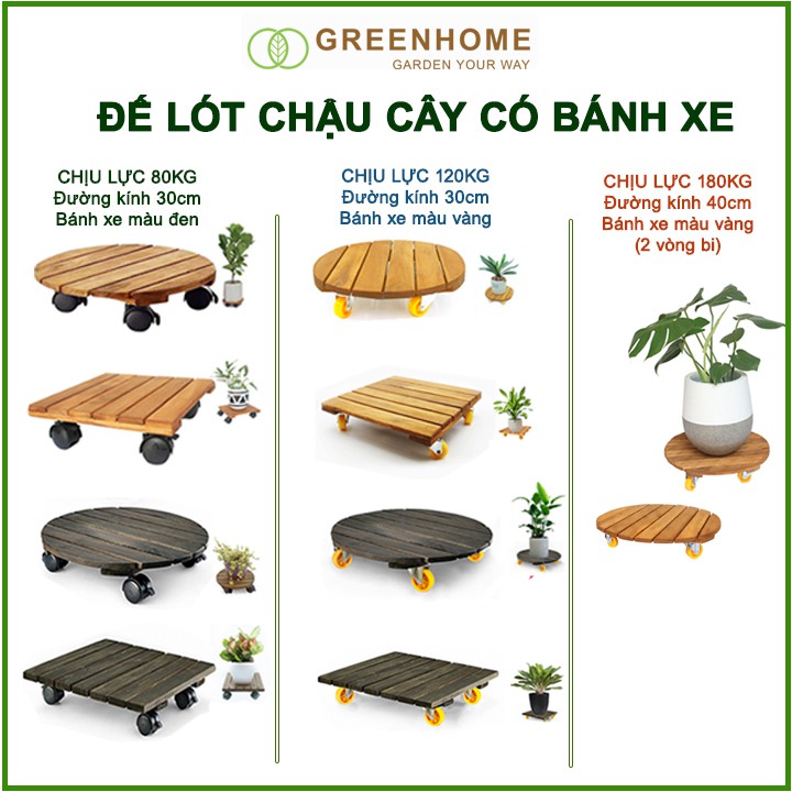 - Đế lót chậu cây có bánh xe Được làm bằng những thanh gỗ chất lượng cao, bền và chắc chắn, chịu được trọng lượng đến 80kg. Chịu nhiệt độ cao, chống tia cực tím, chống thấm nước, mạnh mẽ và bền.