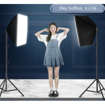 Bộ sản phẩm bao gồm: 2 chân đèn 2m, 2 Softbox 50x70cm kèm dây nguồn, 2 Bóng đèn Led360