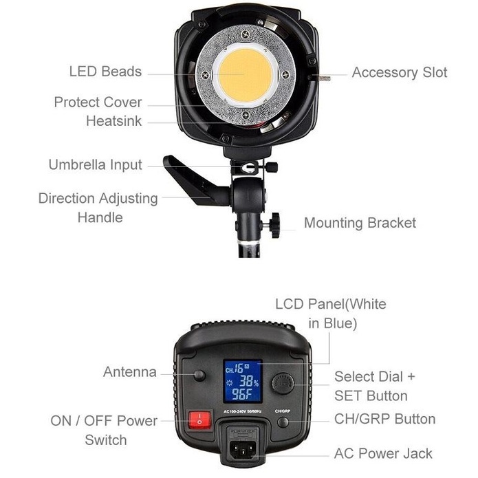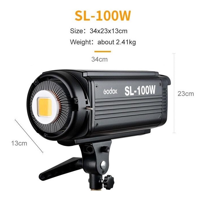 Bộ 2 đèn led Godox SL-100W là sản phẩm mới với nhiệt màu chính xác 5600K cân bằng ánh sáng ban ngày, sử dụng chip LED COB (chip trên bo mạch) cho độ sáng cao và độ chính xác màu sắc. SL-100W Godox có màn hình LCD phía sau và dimmer điều chỉnh công suất từ 10 – 100%, ngoài ra tản nhiệt và quạt tích hợp được trang bị để giúp điều chỉnh nhiệt độ cùng với chức năng kiểm soát nhiệt độ chuyên dụng để bảo vệ đèn LED cho độ bền cao.THÔNG SỐ KỸ THUẬT Bộ 2 ĐÈN GODOX SL-100W: