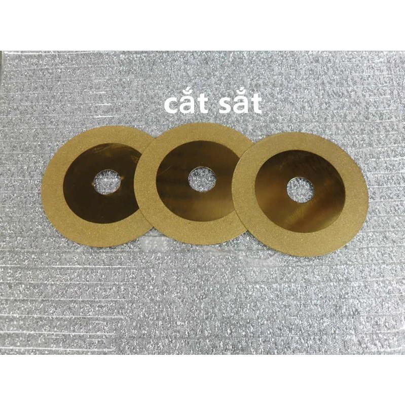 Bộ 2 Đĩa cắt,Đá mài kim cương 100mm(vong), trên bề mặt với phủ lớp xoàn nhân tạo, thích hợp dùng cho việc cắt tỉa, mài kim loại, gạch ceramic, đá, kính,... Đĩa với đường kính 100mm., độ dày 1mm, đường kính bên trong của đá mài 20mm, con đường kính bên trong của Đá cắt 16mm.