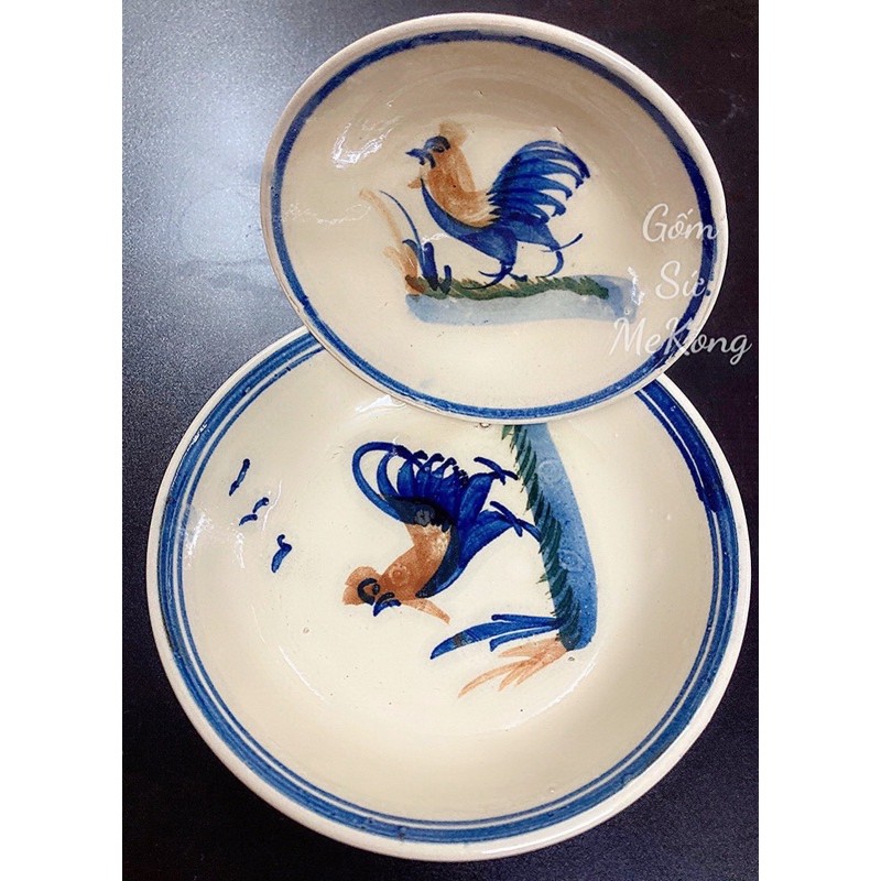 Bộ 2 dĩa con gà trống vẽ tay thủ công- chén xưa gốm sứ Nam Bộ
