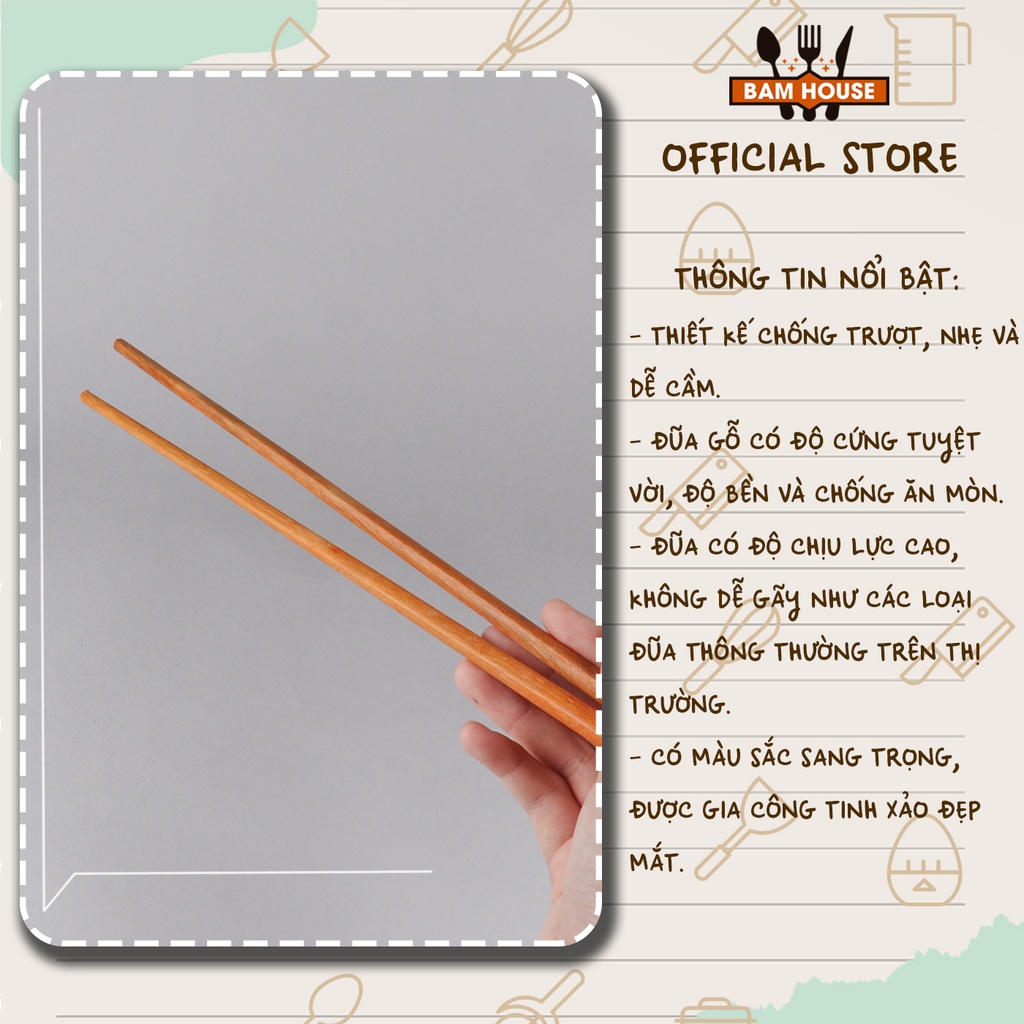 Nhà cửa & Đời sống > Bộ đồ bàn ăn > Bộ dao kéo || [Mã LIFEMALL991 giảm 10% đơn 99K] Bộ 2 đôi đũa gỗ dài chiên thức ăn Bam House chống bỏng cao cấp DGD01 – Gia dụng bếpCòn hàng