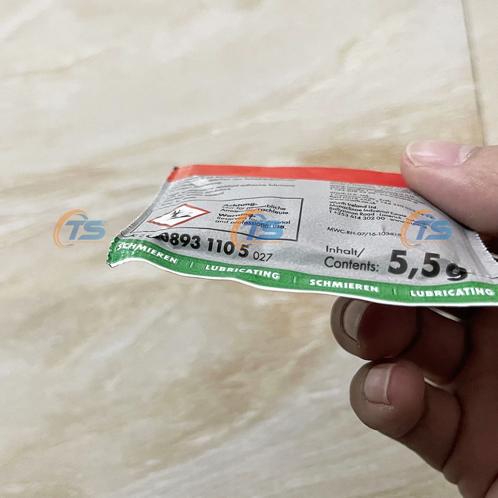 2 Gói Mỡ Tra Má Phanh Wurth Brake Paste 5.5gMỡ phanh Wurth Brake Paste 08931105 để bôi trơn các ổ trượt chịu tải trọng nặng, đặc biệt là trong kết hợp vật liệu thép / kim loại.