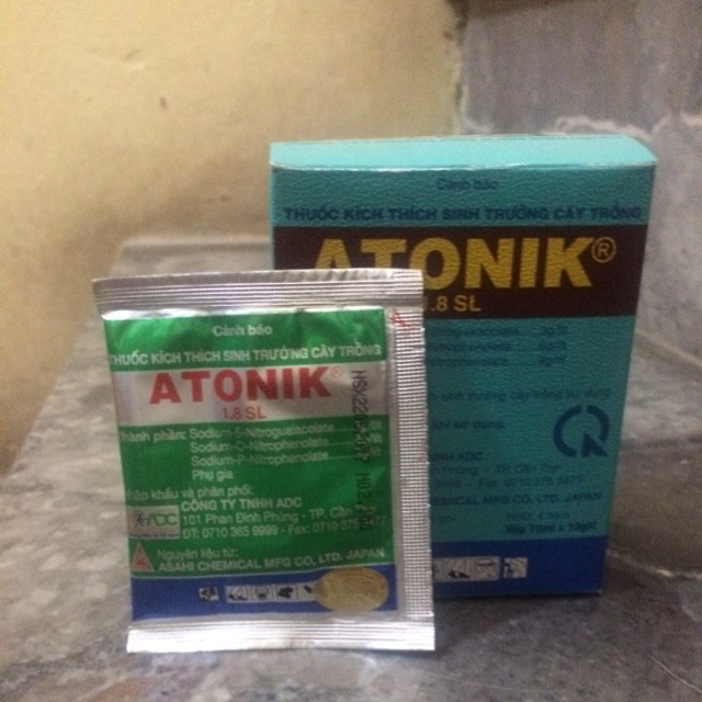 - Atonik 1,8SL 2 gói– Là sản phẩm kích thích sự nẩy mầm và ra rễ, phá vỡ trạng thái ngủ nghỉ của hạt giống. Làm cho cây phát triển khỏe mạnh, phục hồi nhanh chóng sau khi cấy. Atonik là thuốc kích thích sinh trưởng cây trồng thế hệ mới. Cũng như các loại vitamin, Atonik làm tăng khả năng sinh trưởng đồng thời giúp cây trồng tránh khỏi những ảnh hưởng xấu do những điều kiện sinh trưởng không thuận lợi gây ra.