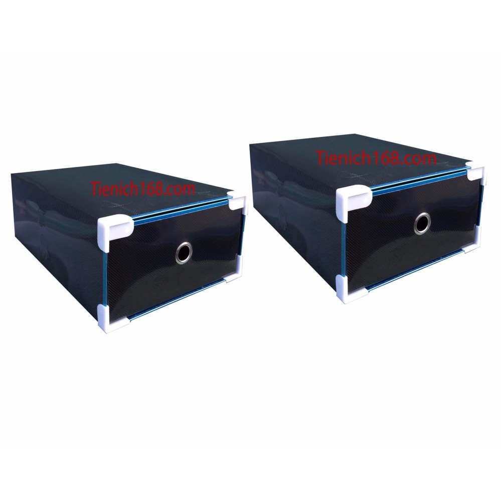 Giới thiệu Bộ 2 hộp đựng giầy có ngăn kéo viền kim loại Đen TI752