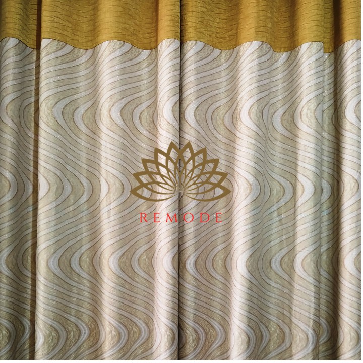 Giới thiệu [2 IN 1 FREESHIP] Rèm cửa ❤️Tặng dây❤️Rèm cửa vải gấm kim tuyến sóng vàng nâu 2 mặt sang trọng