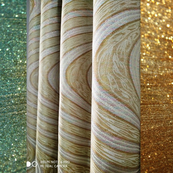 * MÔ TẢ SẢN PHẨM- Vải chất liệu polyester, dệt pha lẫn sợi kim tuyến, chống tia UV, an toàn sức khỏe người dùng