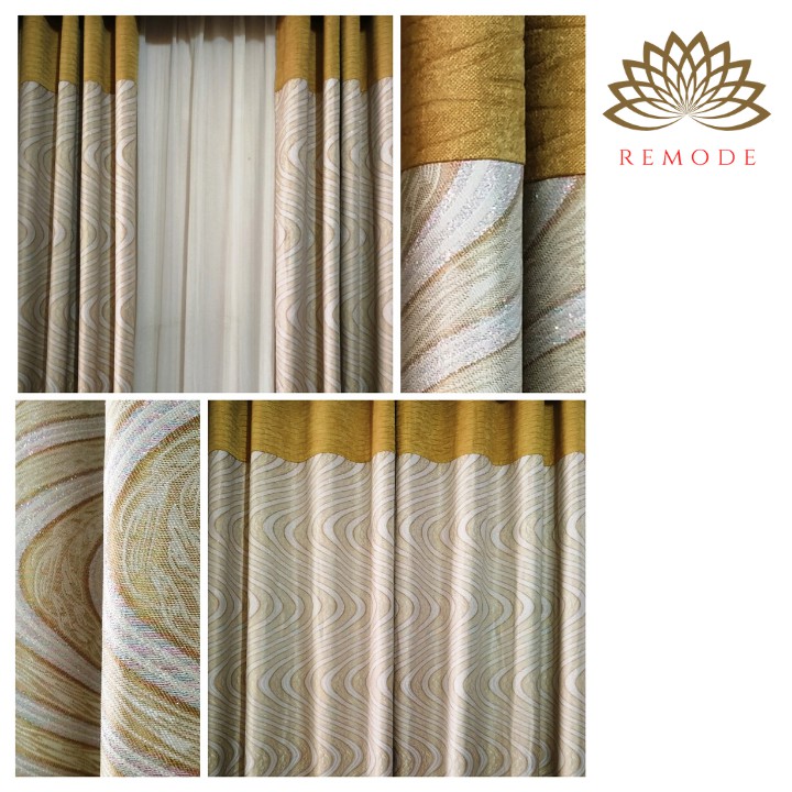 Nhà cửa & Đời sống > Trang trí nhà cửa > Rèm cửa, màn che || [2 IN 1 FREESHIP] Rèm cửa ❤️Tặng dây❤️Rèm cửa vải gấm kim tuyến sóng vàng nâu 2 mặt sang trọngCòn hàng