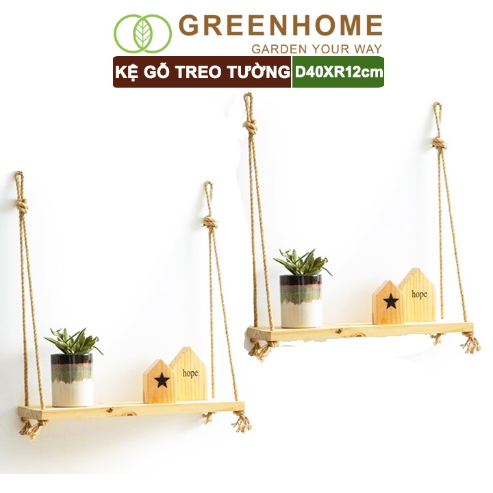 Nhà cửa & Đời sống > Làm vườn > Trang trí vườn || Bộ 2 Kệ gỗ treo tường, D40xR12cm, gỗ thông, tặng kèm 2m dây thừng |GreenhomeCòn hàng