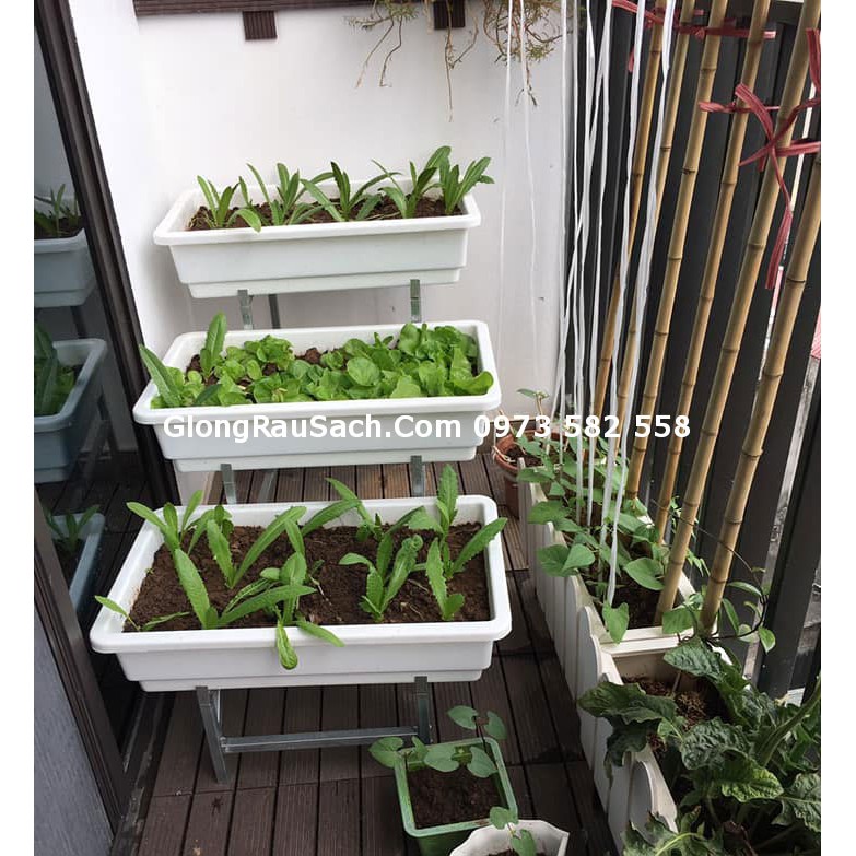 2 Kệ Trồng Rau Sạch Bậc Thang 3 Tầng cho Chậu Đại, Thùng Xốp Ban Công Sân Thượng tại nhà