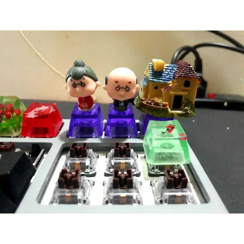 Bộ 2 keycap ông bà trang trí bàn phím cơ.Chất liệu: resin