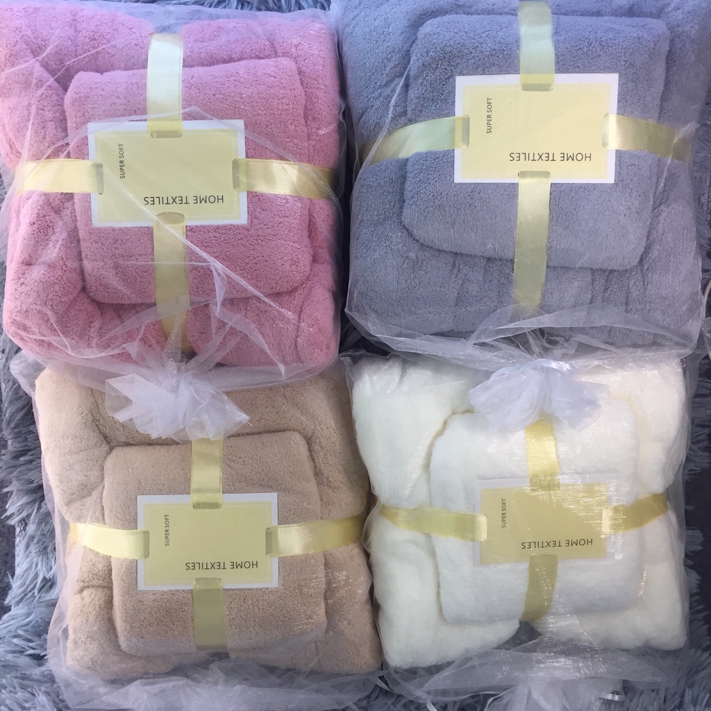 💕💕Khăn tắm là sản phẩm không thể thiếu trong cuộc sống của chúng ta. sản phẩm set khăn của shop gồm 1 khăn tắm và 1 khăn nhỏ để quấn đầu lau đầu cho các chị em phụ nữ thích ủ tóc. Với sợi bông mềm thấm hút tốt và nhanh không bao giờ sợ lạnh sợ gió sau khi tắm ạ. chất liệu khăn mềm mượt như da em bé luôn ý ạ. Sản phẩm shop đã bán rất nhiều nhưng bị xóa mất link nên phải làm lại link mới ạ