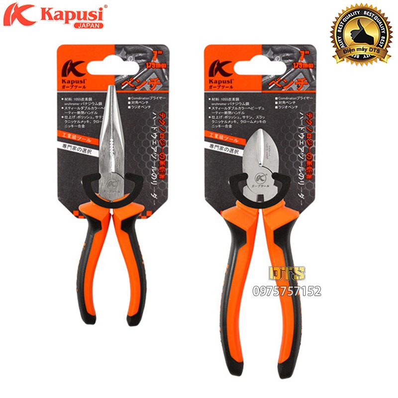 Bộ 2 kìm cắt, kìm nhọn công nghiệp kiểu Nhật Kapusi JAPAN 7 inch, hợp kim thép Niken, thiết kế tiết kiệm 30% lực bấm
