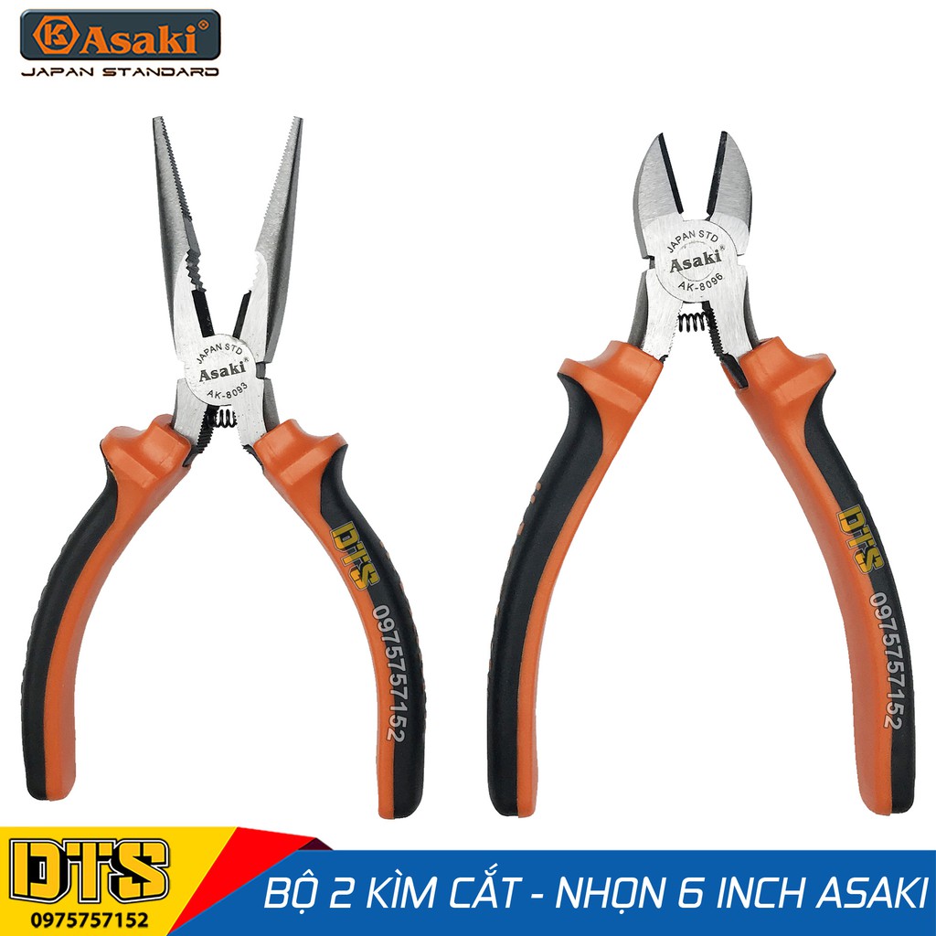 Nhà cửa & Đời sống > Dụng cụ & Thiết bị tiện ích > Dụng cụ > Kìm || Bộ 2 kìm cắt - kìm nhọn kiểu Mỹ Asaki A+cut Tech 6 inch/ 150mm, thép High Carbon độ cứng caoCòn hàng