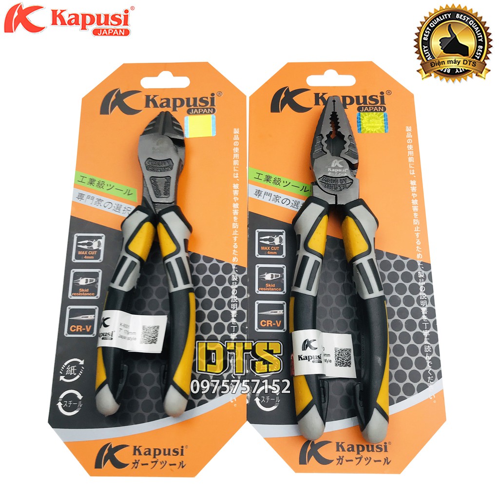 Bộ 2 kìm điện - kìm cắt công nghiệp Kapusi JAPAN thép cao cấp CR-V, thiết kế tiên tiến tiết kiệm 30% lực bấm