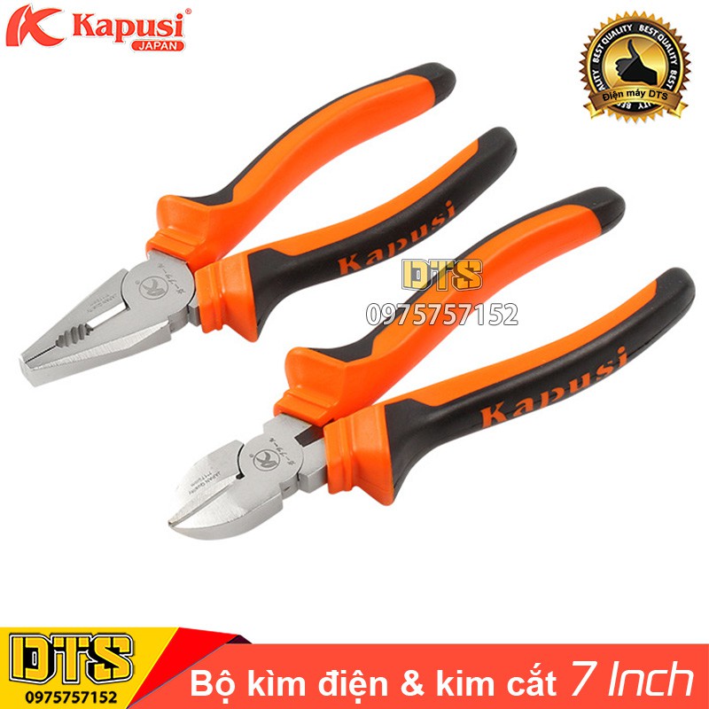 Bộ 2 kìm điện, kìm cắt công nghiệp kiểu Nhật Kapusi JAPAN 7 inch, hợp kim thép Niken , thiết kế tiết kiệm 30% lực bấm