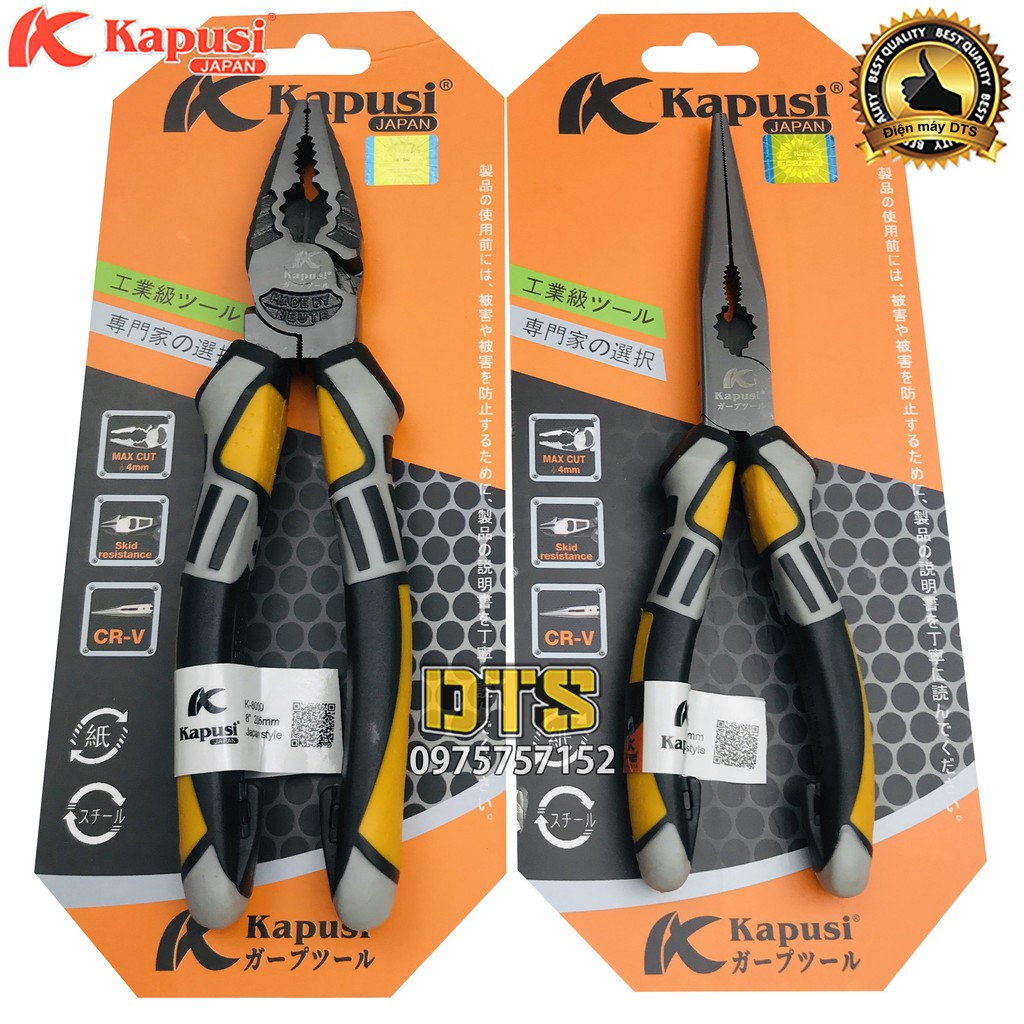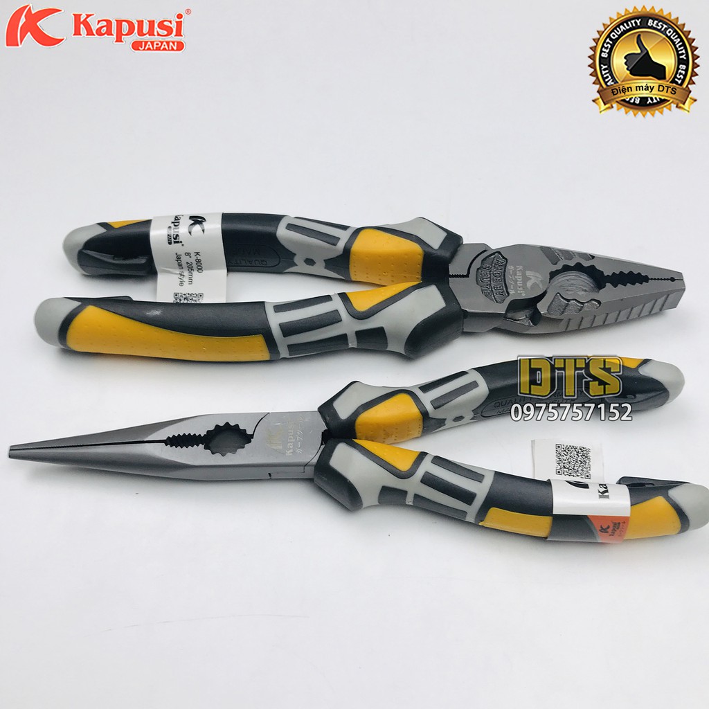 Bộ 2 kìm điện - kìm nhọn công nghiệp Kapusi JAPAN thép cao cấp CR-V, thiết kế tiên tiến tiết kiệm 30% lực bấm