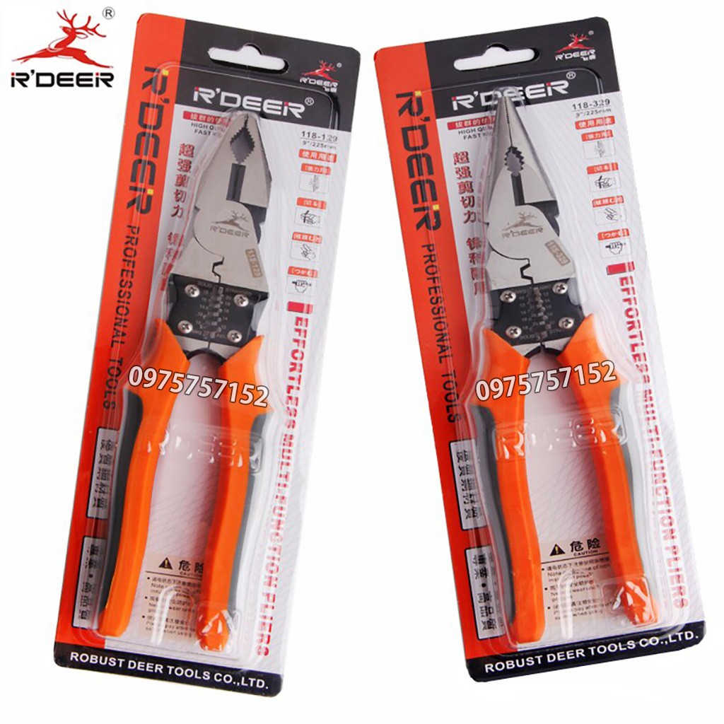 Nhà cửa & Đời sống > Dụng cụ & Thiết bị tiện ích > Dụng cụ > Kìm || Bộ 2 kìm điện, kìm nhọn đa năng, tổ hợp cao cấp 4 trong 1 R'DEER 9inch/225mm (Kẹp-Cắt-Uốn-Tuốt dây)Còn hàng